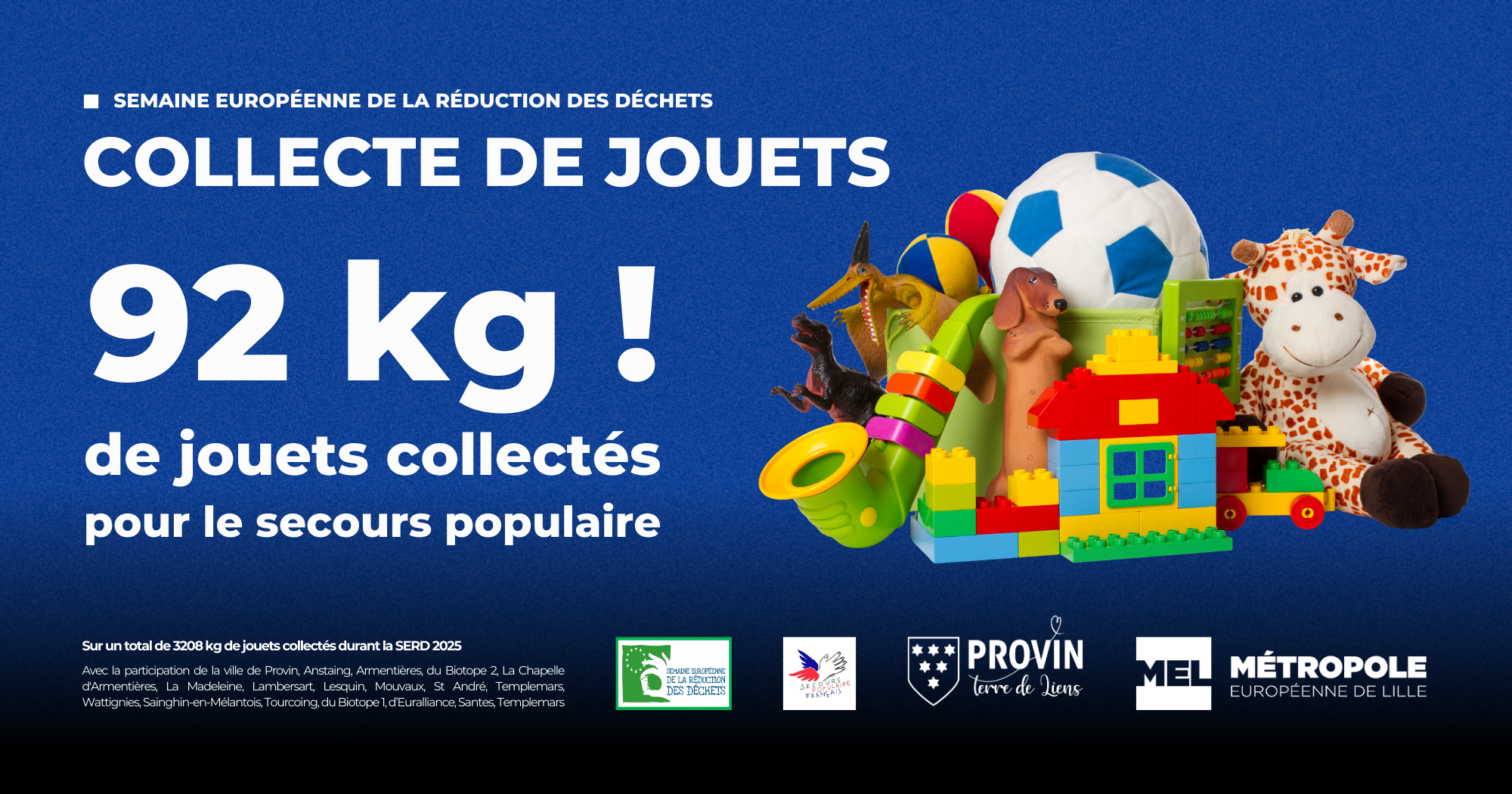Cette année, la collecte de jouets a été moins importante que les années précédentes, mais elle reste très encourageante, avec 92 kg collectés. Sur les trois dernières années, la commune de Provin aura ainsi rassemblé 457,5 kg de jouets, symbole d’un engagement citoyen solidaire et durable. À l’échelle des 19 points de collecte de la Métropole Européenne de Lille, 3,208 tonnes de jouets ont été récoltées, soit plus d’une tonne supplémentaire par rapport à 2024 (1 995 kg).